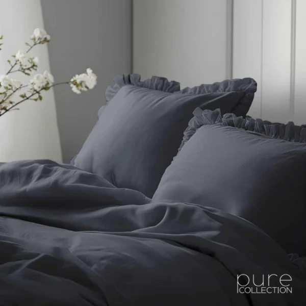 Grafitowo-szara pościel z falbanką Graphite Pure Collection