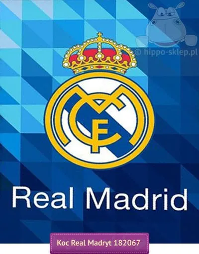 Koc polarowy Real Madryt 02 z wielkim wizerunkiem herbu klubu królewskich z Madrytu na błękitno - niebieskim tle z napisem Hala Madrid. Koc polarowy Real Madrid dla każdego małego fana klubu piłkarskiego z ze stolicy Hiszpanii wykonany z polaru (100% poliester). Duży koc polarowy Real Madryt 150x200 cm w jest ciepły i miękki, doskonale nadaję się jako nakrycie na łóżko może również być przydatny na plaży oraz w trakcie pikniku. Koc polarowy Real Madryt w estetycznej walizce może być świetnym pomysłem na praktyczny upominek dla małego kibica i piłkarza. Producent koce Carbotex, model Duży koc Real Madryt RM 166004, ean 5902385218849
