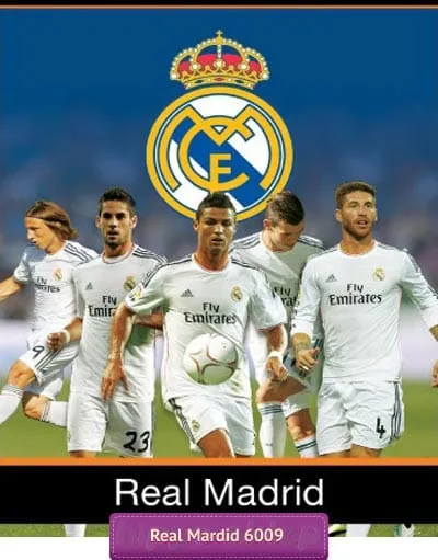 Koc polarowy Real Madryt 03 z wizerunkami najlepszych piłkarzy klubu z Madrytu min. Cristiano Ronaldo, Sergio Ramos i Luka Modric. Koc polarowy dla wszystkich małych fanów klubu piłkarskiego Real Madryt 13-to krotnego triumfatora ligi mistrzów wykonany z polaru (100% poliester) w rozmiarze 120x150 cm. Koc z piłkarzami Realu jest ciepły i miękki, nadaję się jako nakrycie na łóżko niezastąpiony na plaży oraz na pikniku. Koc polarowy z piłkarzami Real Madryt zapakowany w estetyczną tubę może być świetnym pomysłem na drobny i praktyczny upominek dla małego kibica, piłkarza i fana królewskich. Producent licencyjne koce piłkarskie Carbotex, model Koc polarowy Real Madryt RM6009
