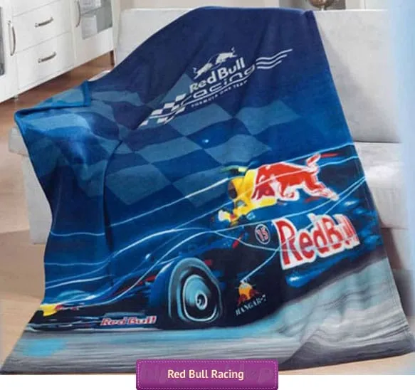 Koc polarowy Red Bull Racing F1 Team - oryginalny licencyjny koc polarowy Red Bull z wizerunkiem bolidu F1 w rozmiarze 130x170 cm. Koc wykonany z polaru posiada certyfikat standardu OEKO-TEX 100. Wysoka jakość i doskonały pomysł na prezent dla każdego małego fana samochodów i wyścigów Formuły 1.