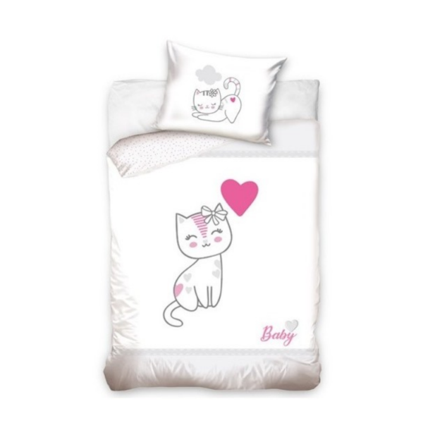 Biała pościel z małym kotkiem Baby 191006B, 100% bawełna, Oeko-Tex 100, na suwaki, rozmiary 100/135, 90/130, 90/120, 80/120 cm
