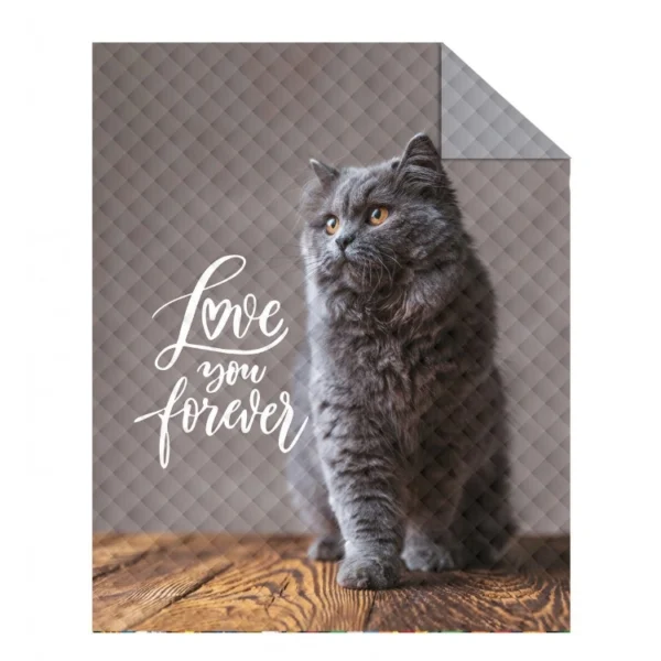 Młodzieżowa narzuta dla nastolatków z kotem. Pikowana narzuta na duże łóżko starszego nastolatka z wizerunkiem kota o beżowo-brązowej pręgowanej sierści. Narzuta młodzieżowa o szerokości 170 cm i długości 210 cm przeznaczona na łóżka z materacem, tapczany lub sofy dziecięce o powierzchni spania od 120x200 do 160x200 cm. Nakrycie na łóżko dla dziewczynek, nastolatek w kolorze brązowym ze siedzącym kotkiem oraz napisem "Jesteś kochany" - You are so Lovely oraz rewersem w jednolitym kolorze beżowym. Drobno pikowane (bezszwowe) narzuty na łóżko z kotem z poszyciem z mikrofazy są przyjemne w dotyku i nie zsuwają się z powierzchni łóżka. Wypełnienie to cienka włóknina poliestrowa, starannie obszyta lamówką w kolorze beżowym. Oprócz walorów dekoracyjnych narzuta pełni funkcje zabezpieczenia powierzchni spania łóżka w ciągu dnia przed kurzem i sierścią zwierzaka. Doskonały pomysł na słodki upominek dla fanek tych wspaniałych czworonogów. Producent Detexpol, model Narzuta na łóżko z kotem dla nastolatek K-076, ean 5901685695831 (170x210 cm)