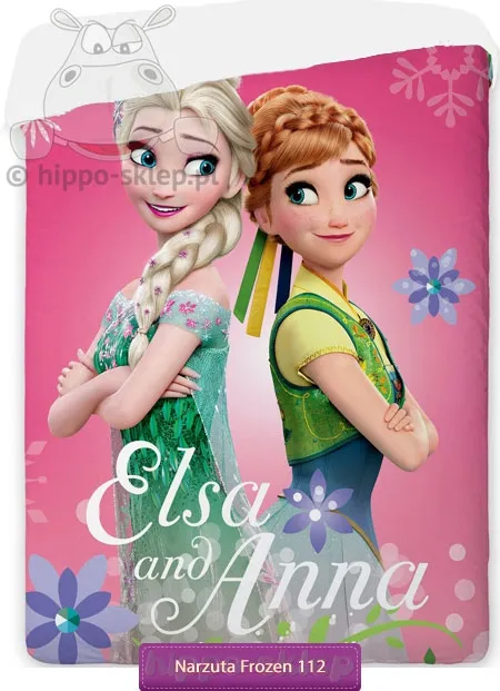 Nakrycie na łóżko, narzuta Anna i Elza różowa z postaciami z filmów Kraina Lodu o przygodach sióstr Elzy i Anny z baśniowej krainy Arendelle. Narzuta dla dziewczynek z postaciami z Krainy Lodu w delikatnej różowej kolorystyce z postaciami zwróconych do siebie plecami Elsy i Anny w szmaragdowo zielonych sukienkach z białymi i fioletowymi motywami płatków śniegu. Narzuta Anna i Elza Frozen 140x195 cm (tolerancja rozmiaru +/-3%) sprawdzi się jako lekkie nakrycie na łóżka dziecięce z materacem o wielkości w zakresie od 80x160 do 120x190 cm. Narzuty z bajkowymi motywami dziecięcy sprawdzi się jako doskonałe zabezpieczenie i okrycie łóżka w ciągu dnia, a także jako lekka kołderka, okrycie w trakcie snu. Narzuty Anna i Elza różowe z poszyciem wierzchnim ze 100% bawełny, pikowane w kształcie prostokątów, obszyte lamówką w kolorze różowym, spód z mikrofazy, materiału przeciwdziałającego zsuwaniu się narzuty z łóżka (materaca). Narzuty w delikatnym odcieniu różowego z postaciami uwielbianymi przez dziewczynki świetnie sprawdzą się w pokoju urządzonym w różowych kolorach lub w białej kolorystyce z bladoróżowymi dodatkami. Model Narzuta Frozen N-FR-112