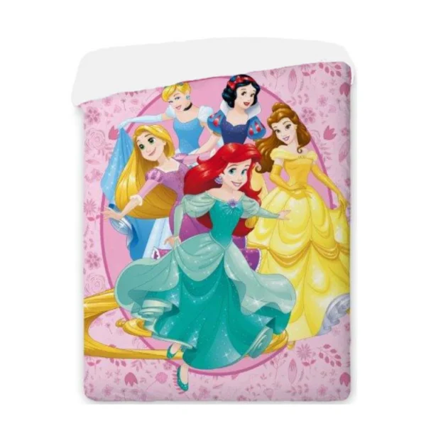 Różowa narzuta z Księżniczkami Disneya, N-PR-103, poszycie 100% bawełna / 100% mikrowłókno, wymiary 140/195 cm