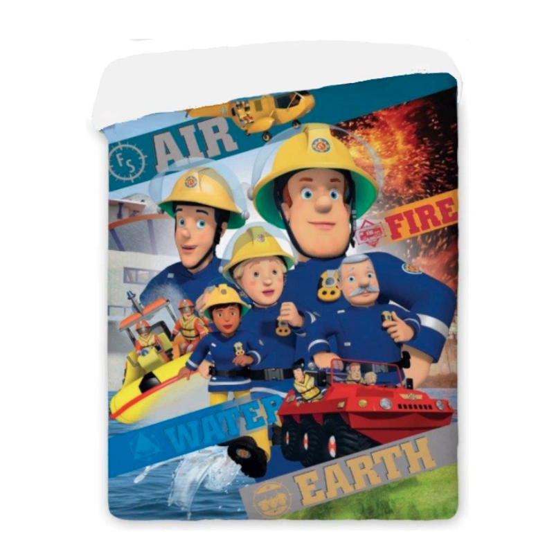 Narzuta na łóżko dziecięce z motywem z bajki Strażak Sam, poszycie 100% bawełna / 100% mikrowłókno, rozmiar 140x195 cm