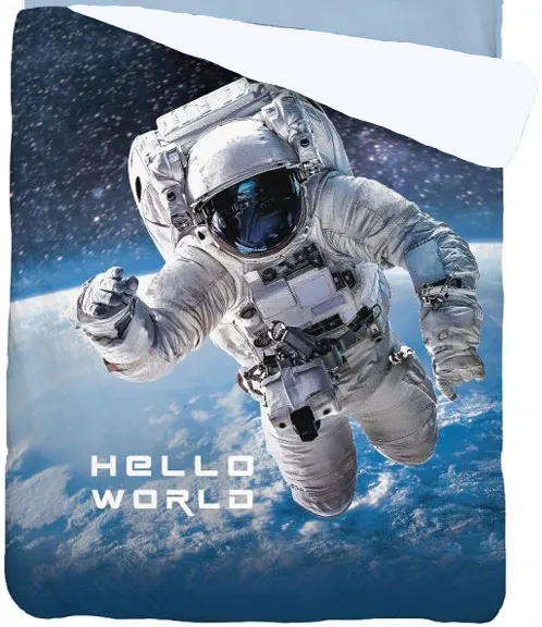 Błękitno-niebieska narzuta z astronautą, Kosmonauta N-4025, pikowana, rozmiar 140x195 cm, poszycie 100% bawełna