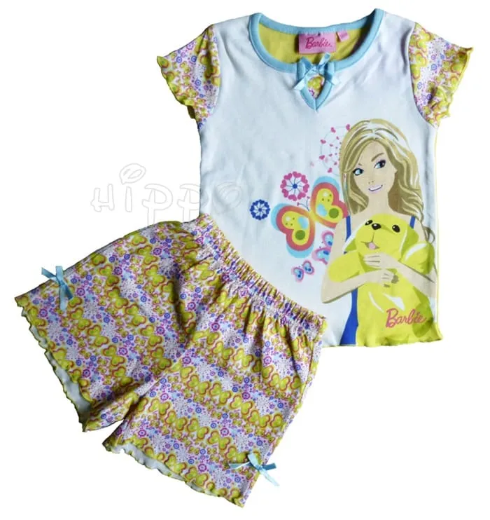 Piżama dla dzieci Barbie z postacią uroczej lalki Barbie. Piżama na licencji Mattel, 100% bawełna, krótki rękaw i spodenki.