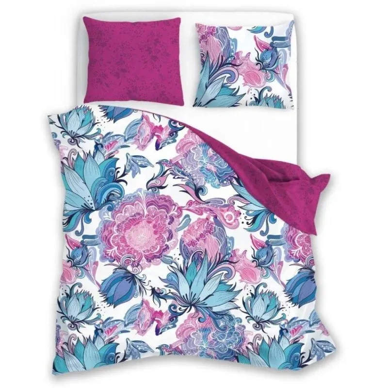 Wielokolorowy komplet pościeli w amarantowo-turkusowe kwiaty Elegant 016, Faro, 100% bawełna, na suwaki, rozmiary 135x200, 140x200, 150x200, 160x200 cm