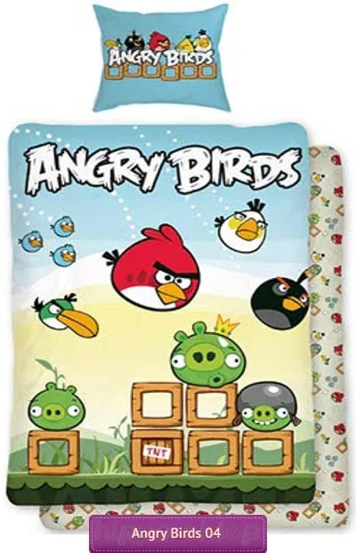 Pościel Angry Birds 04 oryginalny komplet pościeli na licencji Rovio z postaciami wściekłych ptaków z popularnej gry zręcznościowej Angry Birds. Licencyjny komplet pościeli dla dzieci w rozmiarze poszwy na kołdrę 140x200 cm lub 135x200 cm oraz poszewki na poduszkę 70x80 cm, 100% bawełna gładka, poszwa na kołdrę i poszewka na poduszkę zapinana na suwak. Pościel Angry Birds 04 została wyprodukowana zgodnie z norma 100 gwarantującą wykonanie kompletu pościeli tylko z bezpiecznych surowców dla skóry dziecka. Postacie wściekłych ptaków sprawią, że każdy wielbiciel gry będzie ochoczo układał się do poduszki. Pościel Angry Birds 04 to idealny prezent dla chłopca i dla dziewczynki na każdą okazję. Producent pościeli Global Labels, model Pościel Angry Birds AB004