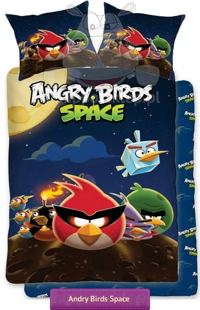 Pościel Angry Birds Space 3 elem oryginalna pościel dla dzieci z postaciami wściekłych ptaków z popularnej serii gier zręcznościowych Angry Birds. Pościel dziecięca 3 elementowa z dwiema poszewkami na poduszkę rozmiar 70x80 cm oraz jednej poszwy na kołdrę rozmiar 140x200 cm lub 160x200 cm. Wyprodukowana na licencji Rovio wysokiej jakości pościel Angry Birds, 100% bawełna gładka, poszewki i poszwa zapinane na suwak. Komplet pościeli dla dzieci posiada certyfikat Tekstylia Godne Zaufania OEKO-TEX 100 potwierdzający wykonanie tylko z materiałów bezpiecznych dla skóry dziecka. Pościel dla dzieci 160x200 cm to typowy polski ogólnodostępny rozmiar natomiast pościel 140x200 cm doskonale sprawdzi się w łóżkach z materacami w przedziale pomiędzy 90x180 cm a 140x200 cm. Pościel dziecięca Angry Birds Space 3 to świetny pomysł na upominek dla małego wielbiciela wściekłych ptaków.