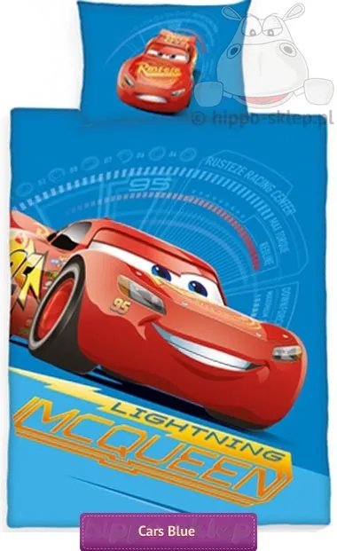 Pościel Auta McQueen dla malucha do łóżeczka lub małego łóżka dziecięcego z Zygzakiem bohaterem filmu Disney Auta 3 (Disney Cars 3). Pościel dla niemowlaków i maluchów z McQueenem w niebiesko błękitnej kolorystyce z dużą postacią Zygzaka na środku poszwy i poszewki. Dziecięca pościel Auta McQueen 100x135, 130x90 lub 90x120 cm w zależności od wybranej opcji z jedną podszewką 40x60 cm, wyprodukowana ze 100% bawełny gładkiej, poszewka na zakładkę, poszwa zapinana na suwak. Komplet pościeli do łóżeczka z Autkiem McQueena posiada certyfikat standardu Oeko-Tex 100 gwarantujący wykonanie z materiałów bezpiecznych dla dzieci, wyprodukowane na licencji Disney Cars (Pixar). Doskonała propozycja na praktyczny upominek dla maluchów. Producent pościeli niemiecka firma Herding, ean 4006891914736, model Mała pościel Disney Cars McQueen 2629250 063