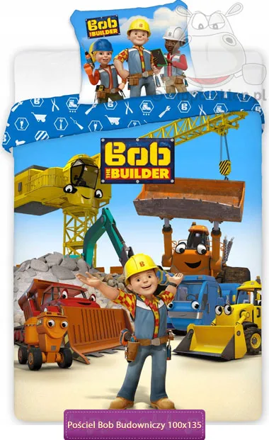 Pościel Bob Budowniczy do łóżeczka lub małego łóżka dziecięcego dla chłopców. Pościele dla niemowlaków i nieco starszych dzieci w wieku przedszkolnym z postacią Boba Budowniczego bohatera najnowszych odcinków serialu animowanego o przygodach na placu budowy. Pościele do łóżeczek Bob Budowniczy w niebieskiej kolorystyce z nowym wizerunkiem Boba szefa firmy budowlanej oraz jego maszynami na poszwie, oraz przyjaciółmi z placu budowy na poszewce. Dziecięca pościel niemowlęca dla małych fanów zaradnego szefa budowy o wymiarach poszwa: 90x120, 90x130 lub 100x135 cm, poszewka 40x60 cm w zależności od wybranej opcji rozmiaru. Pościele niemowlęce z Bobem Budowniczym zapinane na suwaki, wyprodukowane ze 100% bawełny pościelowej gładkiej z certyfikatem Oeko-Tex standard 100 gwarantujący użycie materiałów bezpiecznych dla dzieci. Producent: Faro, ean 5907750586615, model Pościel do łóżeczka Bob Budowniczy 006