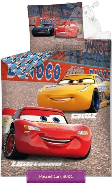 Pościel Disney Cars dla chłopców z postaciami z najnowszej części filmu Auta - Zygzaka McQueena, jego przyjaciółkę i trenerkę Cruz Ramirez oraz rywala Jacksona Sztorma na poszewce. Bawełniana pościel dla dzieci Disney Cars niebiesko beżowej kolorystyce z dużymi postaciami bohaterów Zygzaka i Cruz po środku. Komplety dziecięcej pościeli Disney Cars 140x200 cm lub 160x200 cm a także 150x200 i 135x200 oraz 140x160 i 140x180 w zależności od wybranego wariantu rozmiaru z jedną powłoczką na poduszkę 70x80 cm lub 50x80 cm w komplecie. Pościel Disney Cars na licencji Disney Pixar ze 100% bawełny gładkiej certyfikowana zgodnie z Oeko-tex standard 100 Tekstylia godne zaufania wykonana z bezpiecznych dla skóry materiałów. Pościel z Zygzakiem, Cruz i Jacksonem to świetny pomysł na upominek dla chłopców niezależnie od okazji. Producent Detexpol, model Pościel Auta Cars 30 DC, ean 5901685627320 Pościele Cars w najlepszej cenie! Dawno nie było tak tanio. Skorzystaj z okazji - najlepsze promocje szybko się kończą!