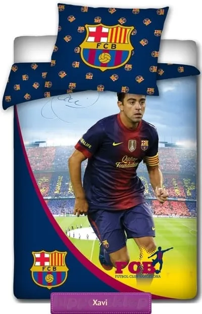 Pościel Xavi oryginalna licencyjna pościel piłkarska z gwiazdą drużyny narodowej Hiszpanii oraz klubu FC Barcelona Xavi Hernández Creus. Pościel z Xavim 140x200 cm lub 160x200 cm z jedną poszewką 70x80 cm w komplecie, zapinana na suwaki. Pościel Xavi FC Barcelona ze 100% bawełny gładkiej, wyprodukowana na licencji klubu z oficjalnej kolekcji FC Barcelona, z hologramem i oryginalnymi wszywkami a także certyfikatem Oeko-Tex 100 gwarantującym wykonanie z materiałów bezpiecznych. Pościel z wizerunkiem Xaviego z autografem piłkarza oraz herbem drużyny ze stolicy Katalonii na tle stadionu Camp Nou. Pościel Xavi - FC Barcelona z oficjalnej kolekcji klubu i może być świetnym pomysłem na praktyczny upominek dla młodego kibica klubu. Producent klubowej pościeli sportowej Carbotex, model Pościel Xavi FCB 1007 FC Barcelona, ean 5907629307136 (160/200), 5907629308119 (140/200)