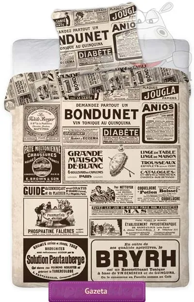Pościel gazety genialna stylizacja pościeli w formie okładki starego paryskiego dziennika z I połowy XX wieku. Pościel młodzieżowa dla nastolatków w tylu "retro" obrazującego jedną szpaltę francuskiej gazety. Pościel z motywem gazety w kolorze beżowym imitująca kolor pożółkłej i wyblakłej gazety z nadrukiem w kolorze brązowo-czarnym. Rewers pościeli "z gazety" w tej samej kolorystyce i również w formie szpalty gazety. Pościel w z motywem gazety dostępna w rozmiarach poszewki na kołdrę 135x200, 140x200, 150x200 lub 160x200 cm oraz jedną lub dwiema poszewkami na poduszki o wymiarach 70x80 cm w zależności od wybranej opcji. Pościel dla nastolatków wykonana ze 100% bawełny gładkiej, zapięcie poszwy i poszewki na suwak, wyprodukowana zgodnie z normą OEKO-TEX standard 100. Komplet pościeli młodzieżowej świetnie uzupełni pokój lub sypialnie w stylu retro lub vintage i będzie jajcarskim prezentem dla wszystkich lubiących czytać przed snem. Producent Faro, model Pościel młodzieżowa gazety 12