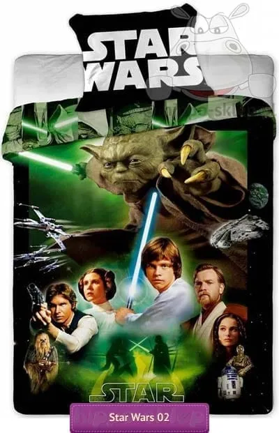 Pościel Gwiezdne Wojny z bohaterami serii filmów fantastyczno przygodowych Georga Lucasa Star wars opisujących losy odległej galaktyki w odległych czasach. Komplet pościel dla dzieci i nastolatków o wymiarach poszwy na kołdrę 140x200 cm oraz 135x200 cm i poszewki na poduszkę 70x80 cm, wykonany ze 100% bawełna gładkiej, poszwa i poszewka zamykana na suwak. Pościel z bohaterami Gwiezdnych wojen w kolorystyce zielonej z najważniejszymi postaciami z filmu wykonany zgodnie z wytycznymi standardu OEKO-TEX 100 gwarantujący bezpieczeństw dla skóry dziecka. Świetny pomysł na prezent dla małego i dużego fana sagi Gwiezdnych Wojen.
