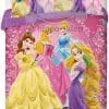 Pościel Księżniczki i Roszpunka licencyjny 3 częściowy komplet pościeli dla dziewczynki przeznaczony na kołderki w rozmiarze 160x200 cm z dwiema poszewkami na poduszki 70x80 cm z księżniczkami Disney Princess Roszpunką, Śnieżką, Kopciuszkiem, Śpiącą Królewną i Bellą. Komplet wykonany z bawełny gładkiej 100%, zapinany na suwaki, posiada certyfikat Oeko-Tex 100 gwarantujący użycie materiałów bezpiecznych dla skóry dziecka.