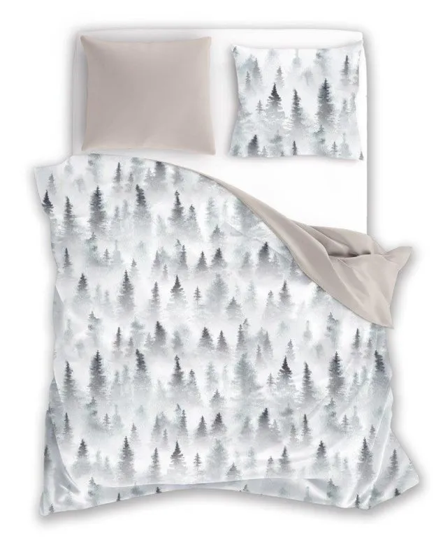 Komplet pościeli śnieżny las we mgle Scandic 021, Faro, 100% bawełna, na suwaki, Oeko-Tex 100, rozmiary standardowe i nietypowe