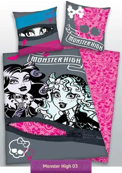 Pościel Monster High Zip oryginalny komplet pościel dla dzieci z postaciami laleczek z serialu animowanego Monster High. Komplet pościeli dziecięcej Monster High na licencji Mattel 140x200 cm z poszewką na poduszkę 70x80 cm w komplecie, poszwa i poszewka zapinana na guziki. Pościel Monster high w szaro-różowej kolorystyce ze 100% bawełny, pościel posiada certyfikat jakości Tekstylia Godne Zaufania Oeko-Tex 100 gwarantujący wykonanie z materiałów bezpiecznych dla dzieci. Pościel z Monster High to praktyczny pomysł na prezent dla dziewczynki - wielbicielki upiornych laleczek Monster High. Producent Herding, model Pościel Monster High 442721050 zip