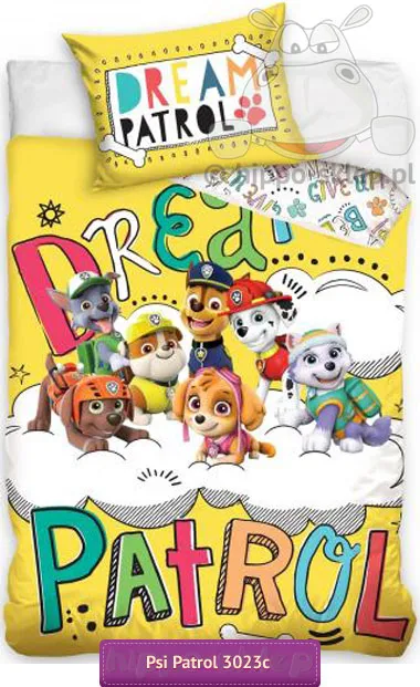 Pościel Psi patrol dla malucha z wizerunkiem szczeniaczków z drużyny Psiego Patrolu przygotowujących się do sapania. Pościel dla malucha Psi Patrol przeznaczona do łóżeczka lub małego łóżka dziecięcego z postaciami Rubble, Chase, Marschall, Skye, Rocky i Everest zawsze pomocnych piesków drużyny Rydera. Żółta pościel Psi patrol z kolorowym napisem "Dream Patrol" na poszwie i poszewce przeznaczona dla chłopców i dla dziewczynek uwielbiających serialowe przygody wyjątkowej psiej drużyny. Małe pościele Psi Patrol z rewersem w kolorze białym z drobnymi motywami nawiązującymi do postaci z filmów. Pościel Psi patrol 120x90 lub 135x100 w komplecie z jedną poszewką dwustronną 40x60 cm, poszwa i poszewka zapinana na suwaki. Mała pościel dziecięca do łóżeczka Psi Patrol wykonana z gładkiej, 100% bawełny z certyfikatem Oeko-tex standard 100. Oryginalna pościel dla dzieci Psi Patrol, wyprodukowana na licencji Nickelodeon (Spin Master). Producent: Carbotex pościele, model Mała pościel Psi Patrol PAW 173023C, ean 5902689411564