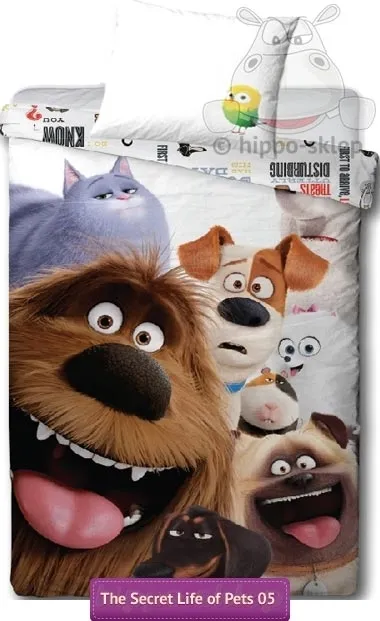 Biały komplet pościeli z bohaterami filmu Sekretne życie zwierzaków domowych, USP 005 BL, Character World, 100% bawełna,