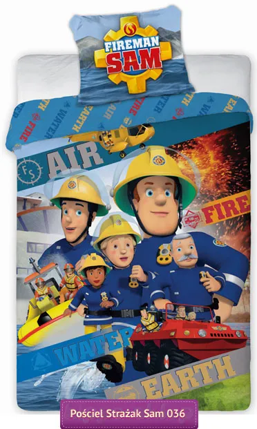 Pościel Strażak Sam z bohaterem brytyjskiego filmu animowanego dla dzieci z odważnym strażakiem z małego miasteczka Pontypandy. Strażak Sam niesie pomoc wszystkim mieszkańcom, którzy są w potrzebie, a wraz z drużyną strażacką chroni miasteczko i okolice przed pożarami i niebezpieczeństwem. Pościel ze Strażakiem Samem i jego strażacką drużyną oraz pojazdami brytyjskiej straży w niebieskiej kolorystyce z kolorowymi napisami. Poszewka na poduszkę z dużym logo bohatera po obu stronach. Pościel Strażak Sam 160x200, 150x200, 140x200 lub 135x200 w zależności od wybranego wariantu rozmiaru z jedną powłoczką na poduszkę 70x80, lub 50x80 cm. Dostępne również rozmiary niestandardowe, wykonywane na wymiar, według indywidualnych potrzeb. Komplety pościli zapinane na suwaki, wyprodukowane ze 100% bawełny gładkiej, na licencji HIT Entertainment. Doskonały pomysł na upominek dla każdego małego wielbiciela strażackich zabaw i serialu z dzielnym Samem. Producent Pościel Faro, model Pościel dziecięca Strażak Sam 036, ean 5907750593958 (160/200), 5907750593941 (140/200)