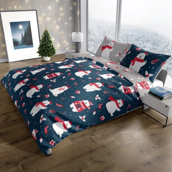 Świąteczny komplet pościeli z niedźwiedziem Scandic 055, 100% bawełna, 100x160, 120x160, 120x180, 135x200, 140x160, 140x180, 140x200, 150x200 i 160x200 cm