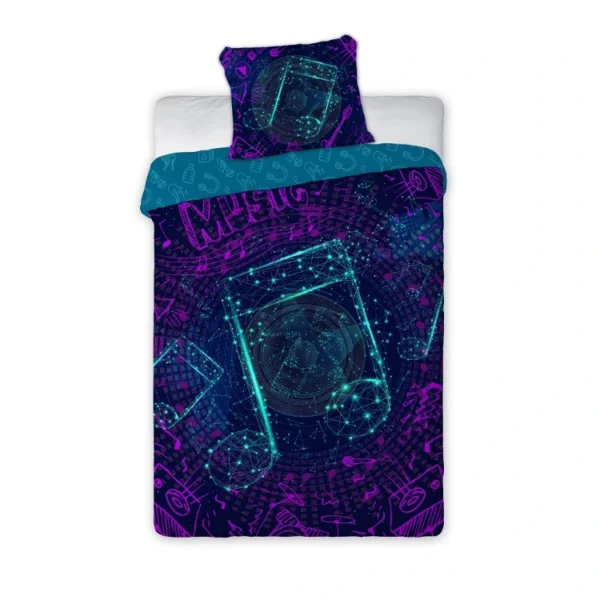Niebiesko-fioletowa pościel świecąca w ciemności nuty 029 3D fluo, 100% bawełna, na suwaki, w rozmiarach 160x200, 150x200, 140x200, 135x200 cm a także 140x180, 140x160 i 120x160 cm