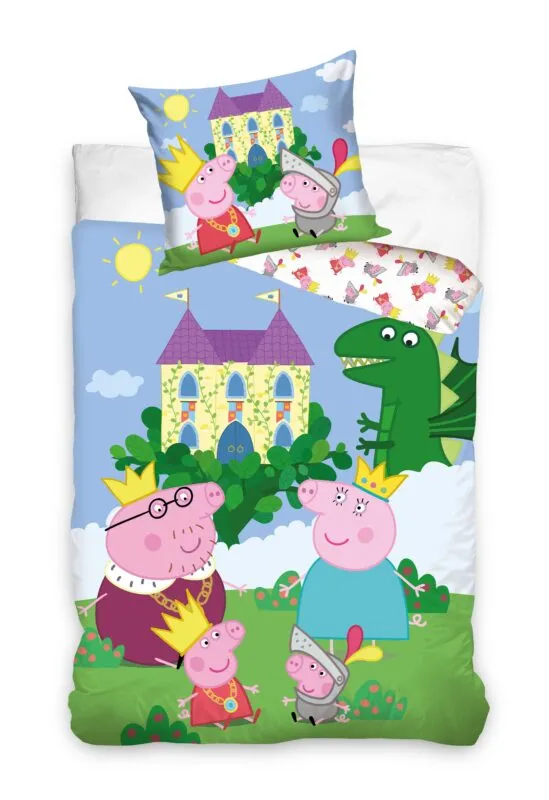 Kolorowy komplet pościeli Świnka Peppa księżniczka i rycerz PP 235018, Carbotex, 100% bawełna, na suwaki, rozmiary 160x200, 150x200, 140x200, 135x200, 140x180, 140x160, 120x180 i 120x160
