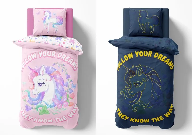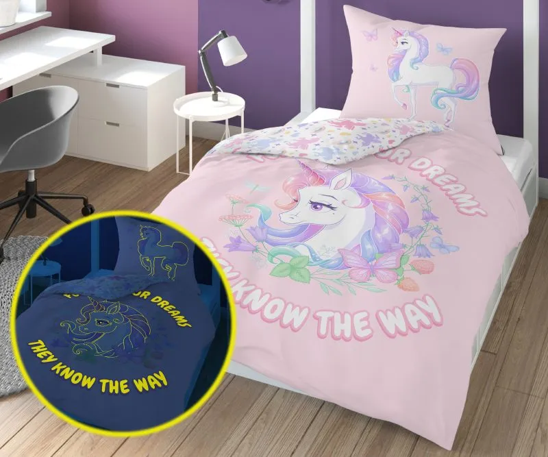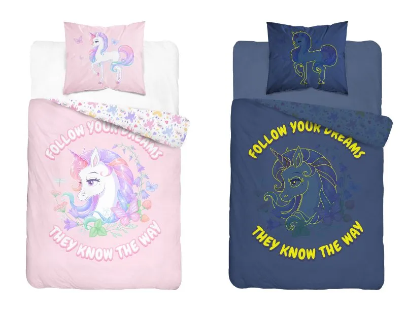 Różowy komplet pościeli Unicorn - Jednorożec Holland Young 4469, Detexpol, 1oo% bawełna, na suwaki, Oeko-Tex 100, rozmiary standardowe i nietypowe