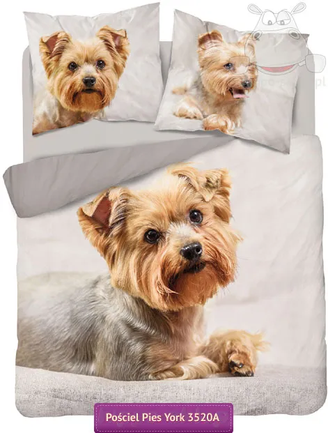 Pościel ze szczeniakiem Yorka Holland natura 3520, Detexpol, 100% bawełna, na suwaki, Oeko-Tex 100