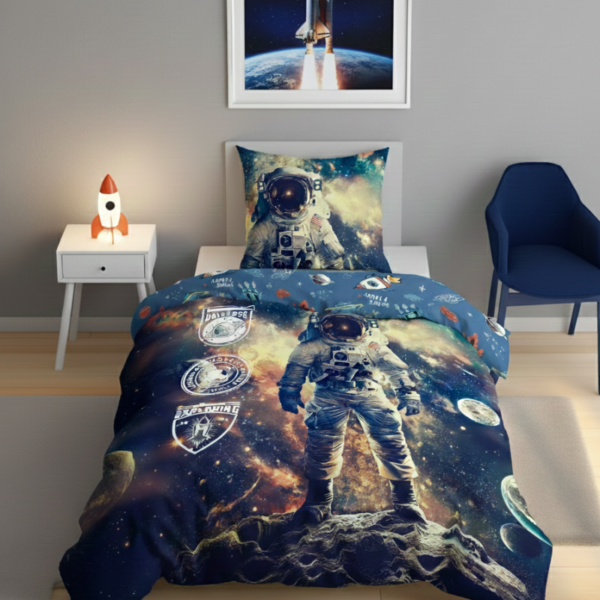 Pościel z motywem kosmonauty w skafandrze 5869, 100% bawełna, na suwaki, Oeko-Tex 100, rozmiary dziecięce i młodzieżowe