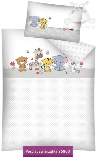 100% bawełna, , Mała pościel ze zwierzątkami 2686 B szara