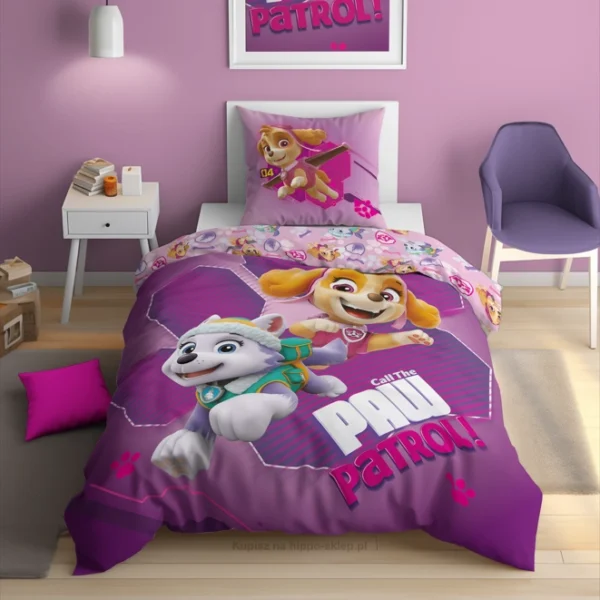 Fioletowo-rózowa pościel Psi Patrol z pieskami Skye i Everest PP-31 dla dziewczynek, 100% bawełna, Oeko-Tex 100, na suwaki, w każdym rozmiarze dziecięcym