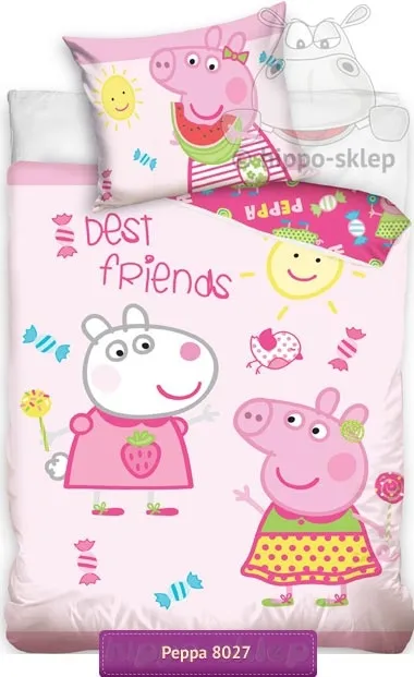 100% bawełna, Świnka Peppa, Mała pościel do łóżeczka Peppa i Zuzia PP 8027
