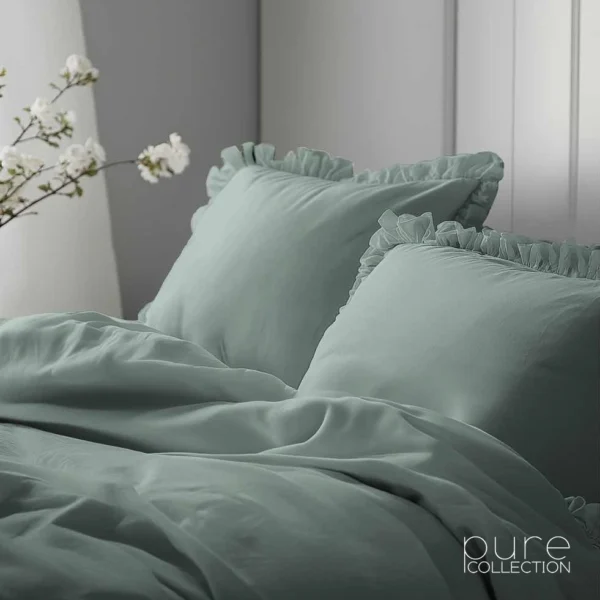 Pościel zielona szałwia Mint Pure Collection z falbaną