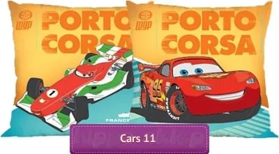 Poszewka Auta Cars 11 powłoczka na poduszkę / jasiek o wymiarach 40x40 cm z Zygzakiem McQueenem i Francesco Paltegumi rywalami wyścigu w Porto Corsa z filmu Auta 2 / Cars 2. W zależności od wybranej opcji poszewki dziecięce występują w dwóch wersjach jako samodzielne powłoczki lub jako zestaw powłoczka z wypełnieniem / wkładem antyalergicznym. Poszewki dziecięce wyprodukowane ze 100% bawełny, zgodnie ze standardem Oeko-Tex 100 zapewniającym bezpieczeństwo dla skóry dziecka, na licencji Disney Cars, zamykane na suwak. Poszewki z Autami to świetne uzupełnienie kompletów pościelowych z kolekcji Auta. Producent poszewki Faro, model Cars 07, ean 5907750518043