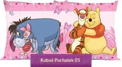 Poszewka Kubuś Puchatek 05 powłoczka / jasiek o wymiarach 40x40 cm z bohaterami filmów wytwórni Disney o przygodach przyjaciół ze stumilowego lasu: Puchatka, Tygryska, Osiołka i Prosiaczka. W zależności od wybranej opcji poszewki dziecięce występują w dwóch wersjach jako samodzielne powłoczki lub jako zestaw powłoczka z wypełnieniem / wkładem antyalergicznym. Poszewki dla dzieci ze 100% bawełny na licencji Disney Winnie The Pooh z certyfikatem Oeko-tex standard 100, zamykane na suwak. Może być dodatkiem do wszystkich kompletów pościeli z kolekcji z Kubusiem Puchatkiem dla dziewczynek. Producent Faro, model Mała poszewka Kubuś Puchatek 05, ean 5907750519484