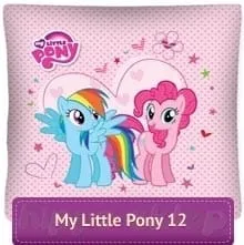 Poszewka My Little Pony 12, powłoczka - jasiek na poduszkę 40x40 z postaciami kucyków z serialu dla dziewczynek Przyjaźń to Magia. Poszewka z Kucykami Rainbow Dash i Pinkie Pie komponuje się z kompletami pościeli z Kucykami i może być ich uzupełnieniem. Powłoczka Kucyki Pony wyprodukowana z bawełny 100%, w rozmiarze 40x40 cm, zasuwana zamkiem błyskawicznym z kolorowym nadrukiem różnym po obu jej stronach, dostępny w dwóch wariantach jako samodzielna powłoczka lub poszewka z wkładem antyalergicznym. Poszewka wraz z wypełnieniem (wsadem) może pełnić funkcje, poduszki dekoracyjnej lub przytulanki. Jasieczek z kucykami Pony wykonany na licencji Hasbro oryginalnymi wszywkami i metkami będzie świetnym uzupełnieniem kompletu pościeli dla małej wielbicielki przygód kucyków Pony