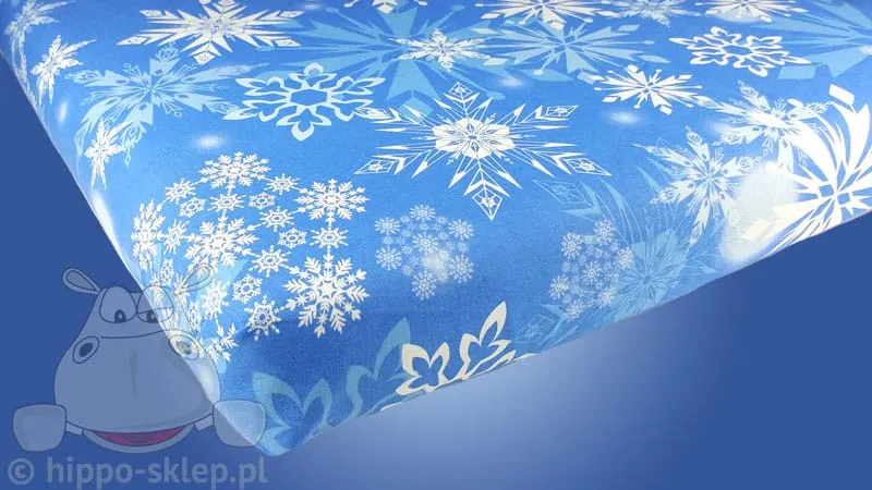 Prześcieradło dziecięce Kraina Lodu - Frozen bez gumki, na materac o wymiarach od 80x160 do 140x200. Prześcieradło z motywami płatków śniegu z filmu Kraina Lodu. Prześcieradło dla dzieci wykonane ze 100% bawełny gładkiej, jednorodne, w kolorze niebieskim certyfikowane według Oeko-Tex standard 100 z materiałów bezpiecznych dla dzieci. Prześcieradło Kraina Lodu to świetne uzupełnienie kompletów pościeli z kolekcji w niebieskiej lub granatowej kolorystyce. Model Prześcieradło dziecięce Kraina Lodu 03, ean 2345678001811