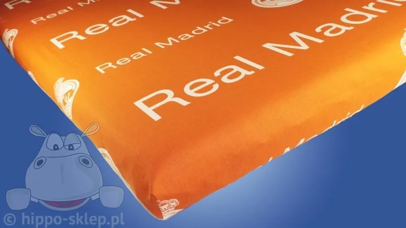 Prześcieradła Real Madrid w kolorze pomarańczowym, gładkie z napisem Real Madrid oraz herbem klubu Królewskich. Prześcieradło Realu Madryt, jednolite, gładkie, bez gumki, ze 100 % bawełny. Prześcieradła do kompletów pościeli z motywami klubu sportowego z Madrytu w rozmiarze 140x200 cm, tolerancja wymiaru (+/- 3%). Prześcieradło Real Madryt można stosować na materac o wielkości od 90x180 cm do 140x200 cm, doskonale skomponuje się z kompletem pościeli Klubowej z pomarańczowymi akcentami. Model prześcieradło Real Madryt RM 003, ean 2345678002054