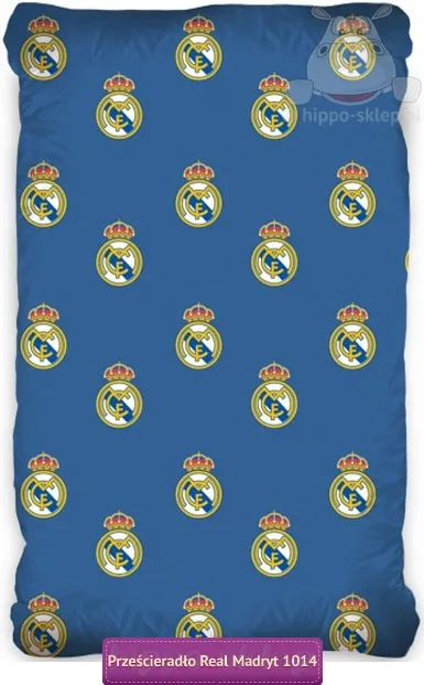 Niebieskie prześcieradło Real Madryt z gumką zabezpieczającą przed zsuwaniem się z materaca przeznaczone na łóżko jednoosobowe do kompletów pościeli klubowej Klubu królewskich z Madrytu. Niebieskie prześcieradła z drobnymi motywami herbu klubu piłkarskiego Realu Madrid, z gumką, jednorodne, wyprodukowane ze 100% bawełny gładkiej, na licencji klubu, z hologramem z oficjalnej kolekcji. Prześcieradło z gumką Real Madryt 90x200 cm przeznaczone na materace o wielkości od 80x180 cm, 90x190 oraz 90x200 cm. Licencyjne prześcieradła Realu Madryt doskonale uzupełni dowolny komplet pościeli z tej samej kolekcji, w białej lub granatowej kolorystyce. Producent Carbotex, model Prześcieradło Real Madryt RM 171014, ean 5902689418389