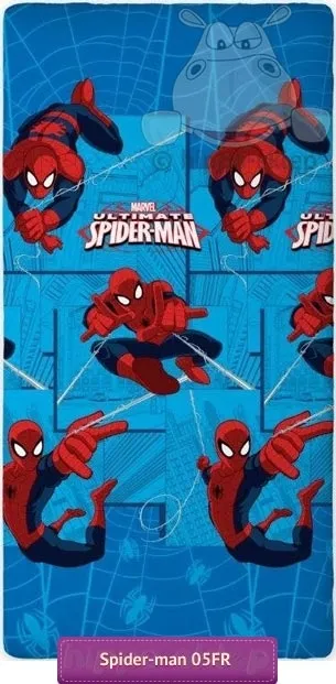 Prześcieradło ze Spider-manem bohaterem serii komiksów oraz powstałych na ich bazie filmów animowanych oraz fabularyzowanych opowiadających o losach Petera Parkera. Prześcieradło z motywem z serialu animowanego Mega Spider-man, wykonane ze 100 % bawełny, na licencji Disney / Marvel, zgodnie z wytycznymi Oeko tex standard 100. Prześcieradło dla dzieci z gumką o wymiarach 90x200 cm, w niebieskiej kolorystyce z postacią człowieka pająka oraz motywem pajęczej sieci będzie odpowiednie do wszystkich zestawów pościeli w odcieniach niebieskiego z wizerunkiem Spidermana. Producent prześcieradła Faro, model Prześcieradło dziecięce Spiderman 05