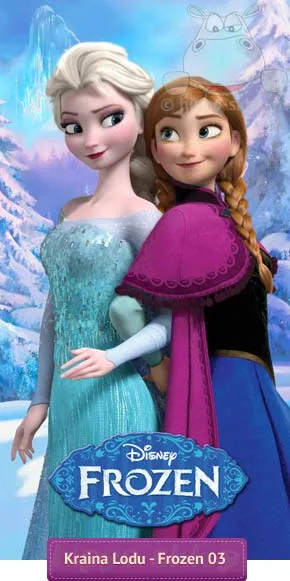 Ręcznik Anna i Elsa – Frozen z postacią sióstr Anny i Elzy z filmu animowanego Disney-a Kraina Lodu (Frozen). Ręczniki plażowe i kąpielowe dla dziewczynek w kolorze niebieskim z elementami fioletu i bieli z dużymi postaciami rozdzielonych w dzieciństwie sióstr z Księstwa Arendelle. Ręcznik plażowy z oficjalnej kolekcji Disney -a o wymiarach 70x140 cm, wykonany ze 100% bawełny o splocie frote i jednostronnym wykończeniu welurowym z wyraźnym nadrukiem. Ręczniki dla dziewczynki doskonale sprawdza się do osuszania po kąpieli w domu lub nad wodą a także może pełnić tradycyjną funkcje ręcznika plażowego. Ręcznik dziecięcy wyprodukowany na licencji Disney -a to niezbędne wyposażenie łazienki dla wszystkich fanek filmu Kraina Lodu. Producent ręczniki Faro, model Ręcznik dziecięcy Kraina Lodu 03