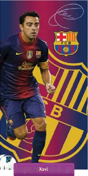 Sportowy ręcznik licencyjny Xavi - ręcznik plażowy z wizerunkiem piłkarza reprezentacji Hiszpanii i obrońcy FC Barcelony grający z numerem 6. Oryginalny licencyjny ręcznik plażowy Xavi Hernandez (FC Barcelona), ze 100% bawełny o wykończeniu welurowym z nadrukiem, z oryginalną wszywką i hologramem. Bawełniany duży ręcznik Xavi 75x150 cm doskonały dla kibica Barcy, niezastąpione na plaży, na basenie a także w domowej łazience. Ręczniki z Xavim są przyjemne w dotyku a trwałe kolory zachowują nasycenie nawet pomimo częstego prania. Ręczniki z Xavi Hernandezem to fajny prezent małego fana piłki nożnej i klubu piłkarskiego F.C. Barcelona. Producent Carbotex, model Ręcznik piłkarski Xavi FCB 2007