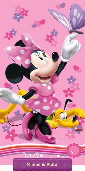 Plażowy i kąpielowy ręcznik Minnie i Pluto dla dziewczynki z postacią Myszki Minnie oraz jej przyjaciela psa Pluto z filmów animowanych Disney-a. Różowy ręcznik dziecięcy z dużymi postaciami Myszki Minnie i psa Pluto z motywami kwiatków i serduszek. Ręcznik dla dzieci Minnie Minnie i Pluto 75x150 cm, wykonany ze 100% bawełny o jednostronnym wykończeniu welurowym z nadrukiem. Bawełniane ręczniki dziecięce na licencji Disney-a niezastąpiony w domu, na plaży i basenie, są przyjemne w dotyku, kolory są trwałe i nie blakną nawet po wielokrotnym praniu. Ręcznik z Myszką Minie to świetny pomysł na praktyczny prezent dla wielbicielek małej, wesołej i sprytnej myszki. Producent Jerry Fabrics, model Ręcznik dla dzieci Myszka Minnie 2012