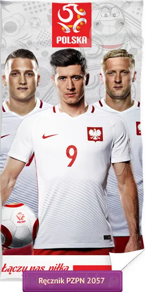 Ręcznik Reprezentacji Polski z piłkarzami, których nieoceniona walka na piłkarskich boiskach doprowadziła do awansu reprezentacji na mistrzostwa Świata w Rosji 2018 roku i finałów EURO 2020. Ręczniki z piłkarzami Polskiej reprezentacji: Robertem Lewandowskim, Kamilem Glikiem oraz Piotrem Zielińskim w biało czerwonych, narodowych strojach. Ręcznik Reprezentacja Polski 70x140 cm wykonany ze 100% bawełny o splocie frote i jednostronnym wykończeniu welurowym z nadrukiem. Ręczniki Reprezentacji Polski z piłkarzami wyprodukowane na licencji Polskiego Związku Piłki Nożnej (PZPN) z oficjalnej kolekcji na EURO 2020. Doskonały pomysł na upominek dla małych piłkarzy i fanów Polskich piłkarzy. Model Ręcznik piłkarski PZPN 17-2054, kod ean 5902689413278