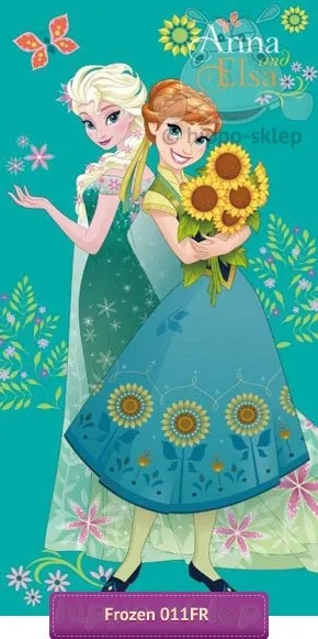 Ręcznik z Anną i Elzą Gorączka Lodu Disney-a z postaciami sióstr z krótkiego filmu animowanego opowiadającego o przygotowaniach do urodzin młodszej z sióstr. Ręczniki plażowe i kąpielowe dla dziewczynek w kolorze zielonym i motywami wiosennymi z dużymi postaciami bohaterek z Księstwa Arendelle z oficjalnej kolekcji Disney -a o wymiarach 70x140 cm. Plażowy ręcznik kąpielowy dla dzieci wykonany ze 100% bawełny o splocie frote i wykończeniu welurowym z wyraźnym nadrukiem. Plażowe ręczniki dla dziewczynek doskonale sprawdza się po kąpieli w domu jak również nad wodą. Ręcznik dziecięcy wyprodukowany na licencji Disneya z oficjalnej kolekcji Frozen Fever - Gorączka lodu. Producent ręczniki Faro, model Ręcznik dziecięcy Frozen 011 Gorączka Lodu, ean 5907750543700