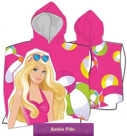 Ręcznik z kapturem Barbie ponczo plażowe dla dziewczynki. Różowe ręczniki kąpielowe z kapturkiem z dużą postacią Barbie - najsłynniejszej lalki oraz głównej bohaterki serialu Przygody w domku marzeń dla najmłodszych dziewczynek. Ręcznik z kapturem dla dziewczynki o wymiarach 60x120 cm po rozłożeniu, z postacią Barbie niezbędny podczas letnich zabaw na plaży, lub basenie zewnętrznym szybko osusza po kąpieli i pozwala na zabawy po wyjściu z wody bez nieprzyjemnego wycierania. Praktyczny kaptur zapobiega zrzuceniu ręcznika i pozwala szybko wysuszyć włosy. Oryginalne ręczniki z kapturem z Barbie na licencji Mattel, z kolorowym jednostronnym nadrukiem, wierzch ręcznika ma wykończenie welurowe, spód o splocie pętelkowym frote. Ręczniki są solidnie wykonane i miłe w dotyku, nie płowieją i nie farbują zachowując nadruk nawet po wielokrotnym praniu. Producent Setino, model Ręcznik z kapturem ponczo Barbie 370
