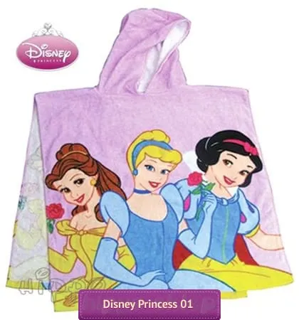 100% bawełna, Księżniczki Disney, Ponczo ręcznik z kapturem Księżniczki 01